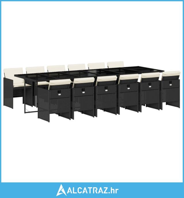13-dijelni vrtni blagovaonski set s jastucima poliratan crni - NOVO
