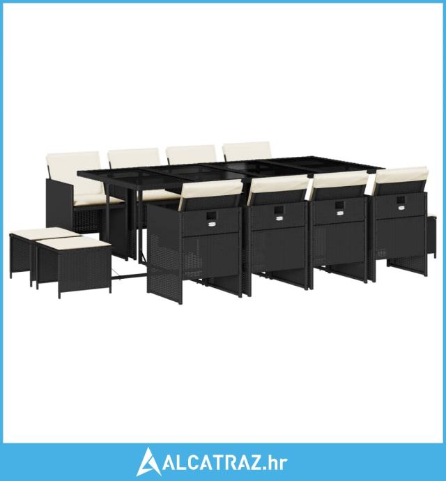 13-dijelni vrtni blagovaonski set s jastucima poliratan crni - NOVO
