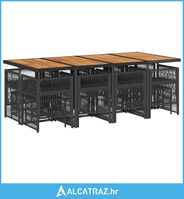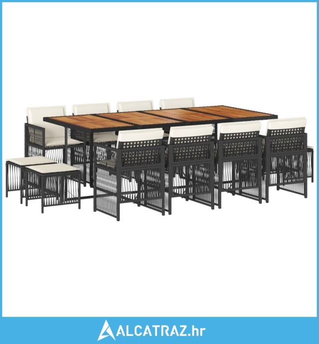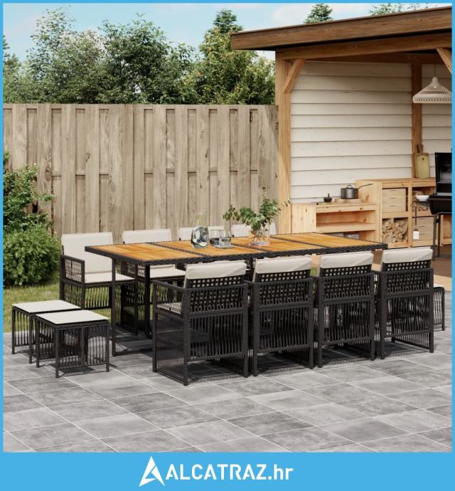 13-dijelni vrtni blagovaonski set s jastucima poliratan crni - NOVO