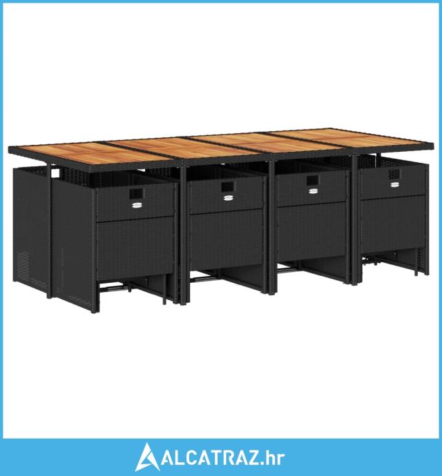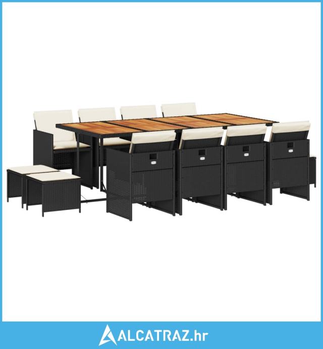 13-dijelni vrtni blagovaonski set s jastucima poliratan crni - NOVO