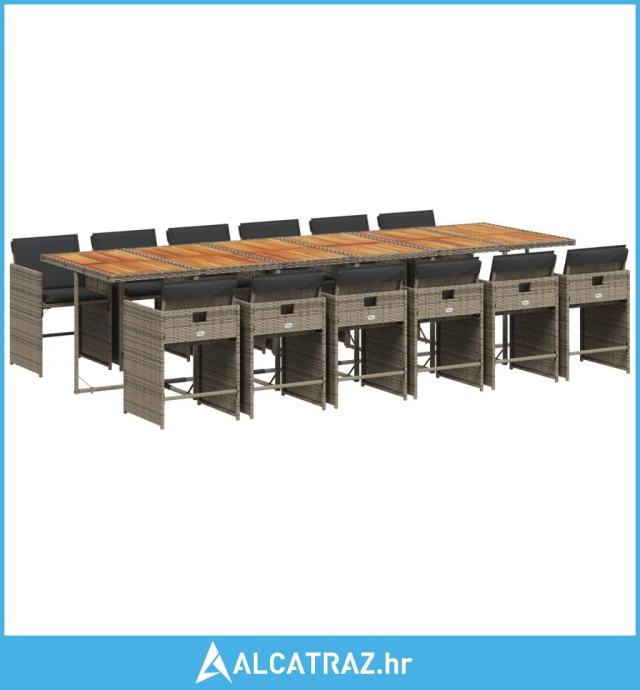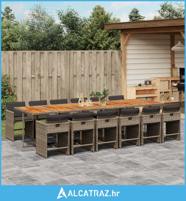 13-dijelni vrtni blagovaonski set s jastucima poliratan sivi - NOVO