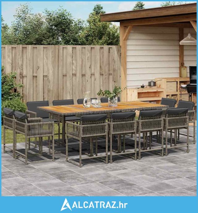 13-dijelni vrtni blagovaonski set s jastucima poliratan sivi - NOVO