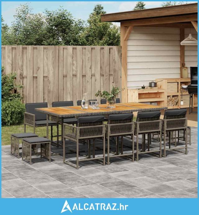 13-dijelni vrtni blagovaonski set s jastucima poliratan sivi - NOVO