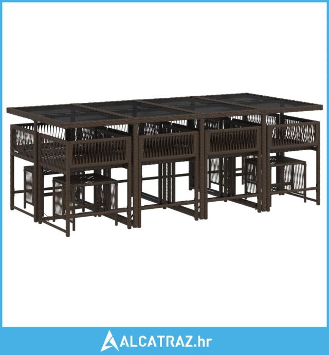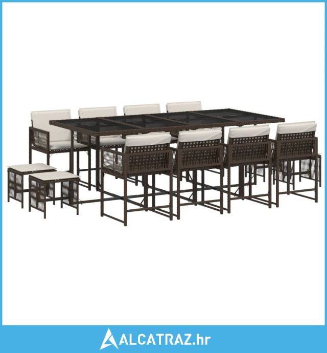 13-dijelni vrtni blagovaonski set s jastucima poliratan smeđi - NOVO