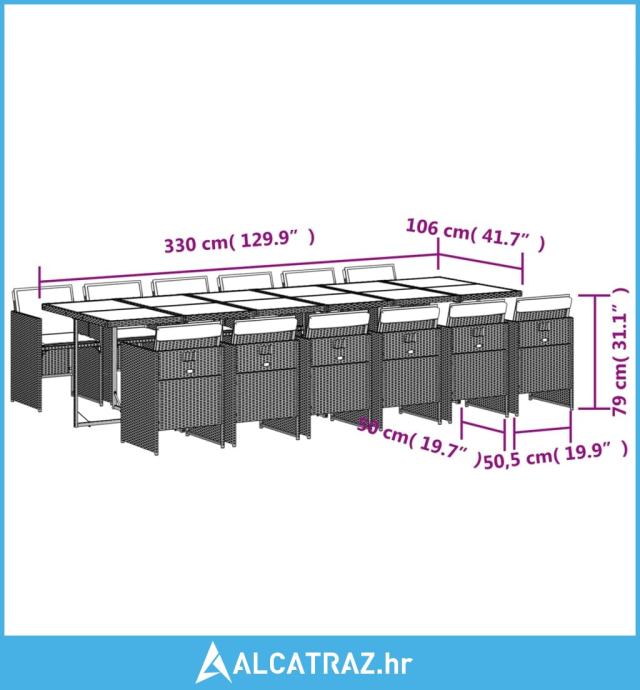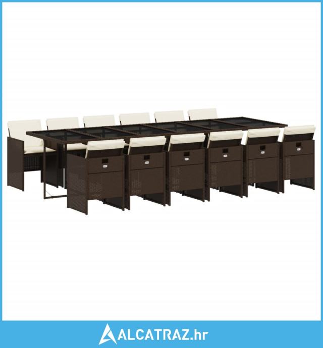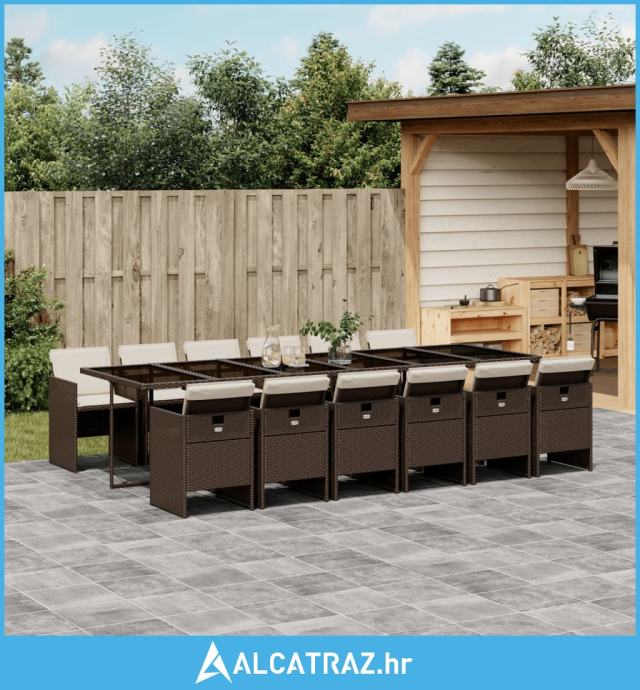 13-dijelni vrtni blagovaonski set s jastucima poliratan smeđi - NOVO
