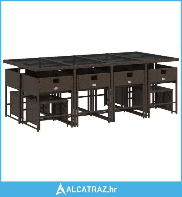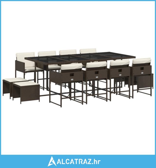 13-dijelni vrtni blagovaonski set s jastucima poliratan smeđi - NOVO