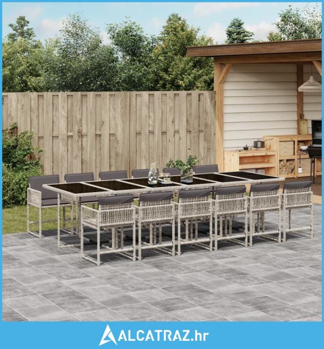 13-dijelni vrtni blagovaonski set s jastucima svijetlosivi - NOVO