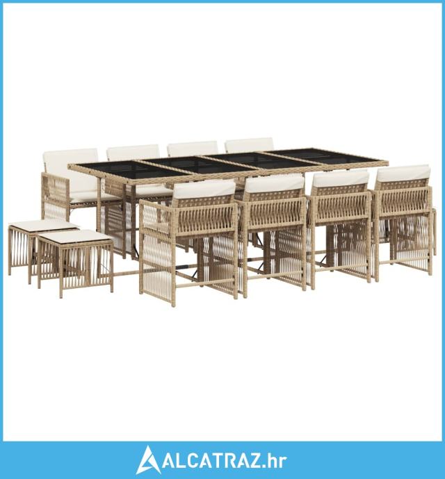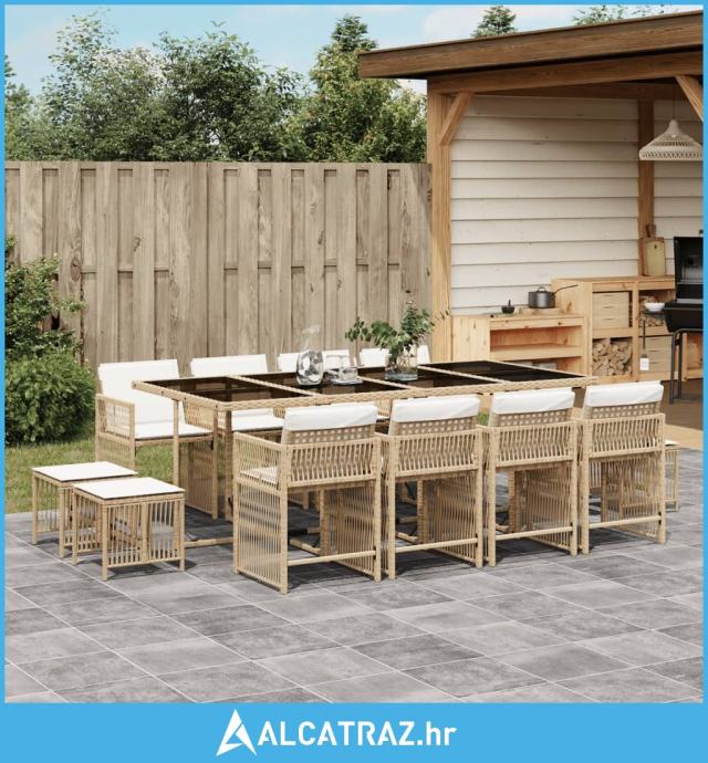 13-dijelni vrtni blagovaonski set od poliratana s jastucima bež - NOVO
