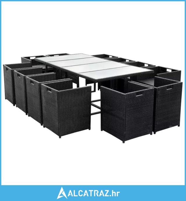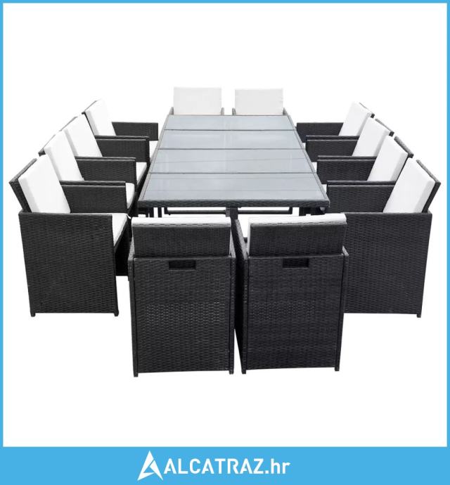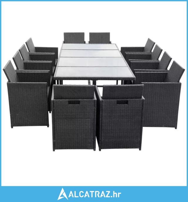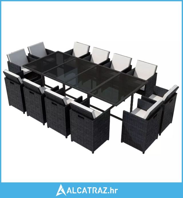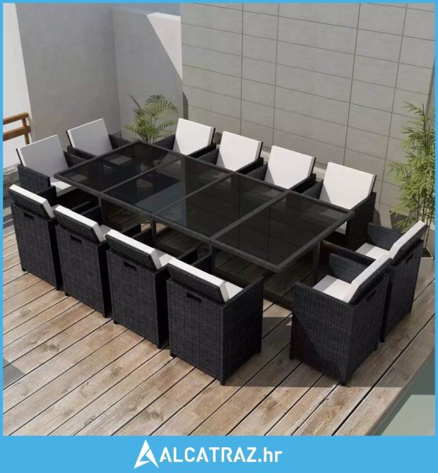 13-dijelni vrtni blagovaonski set od poliratana s jastucima crni - NOV