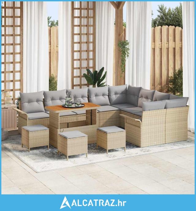 13-dijelni vrtni kauč s jastučićima bež poli ratan akacija, kauč za 2
