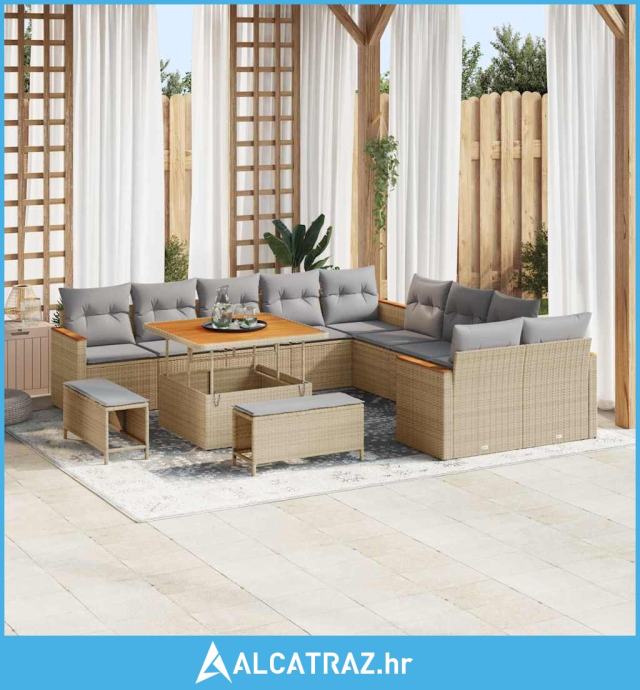 13-dijelni vrtni kauč set s jastučićima bež poli rattan akacija - NOVO