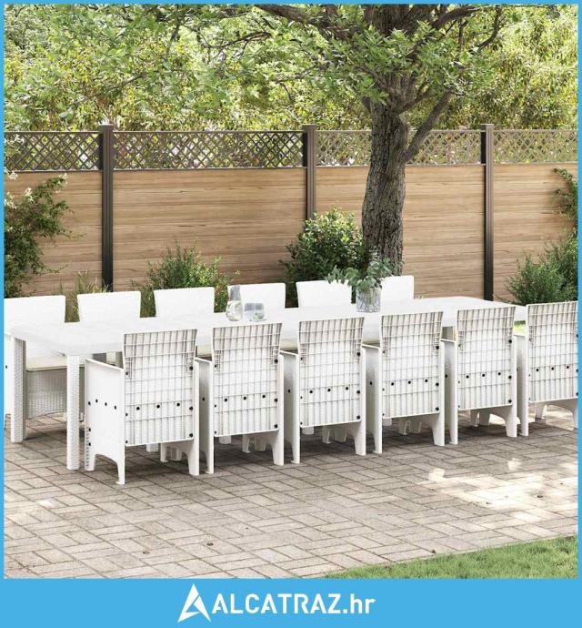 13-dijelni vrtni set za objedovanje s jastučićima bijeli poliratan - N
