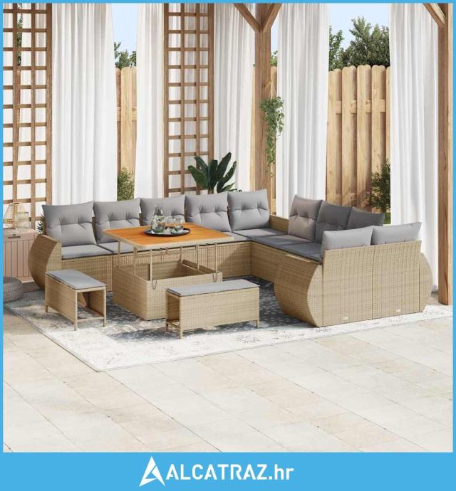 13-dijelni vrtni set sofe s jastučićima bež poli ratan akacija - NOVO