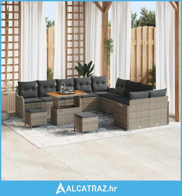 13-dijelni vrtni sofa set s jastucima siva poli ratan akacija, 2-sjedn