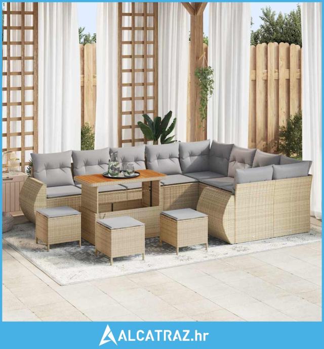 13-dijelni vrtni sofaset s jastučićima Bež Poli Ratan Akacija - NOVO