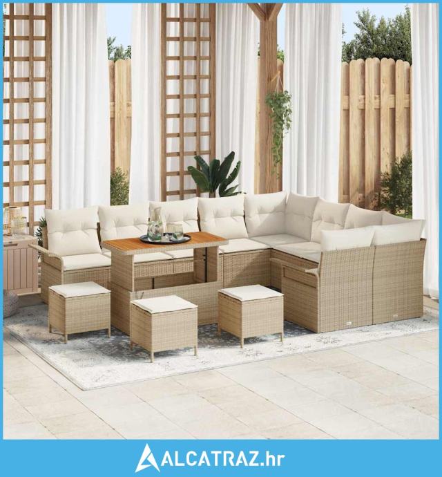13 komada vrtni set kauča s jastucima bež poli ratan akacija - NOVO
