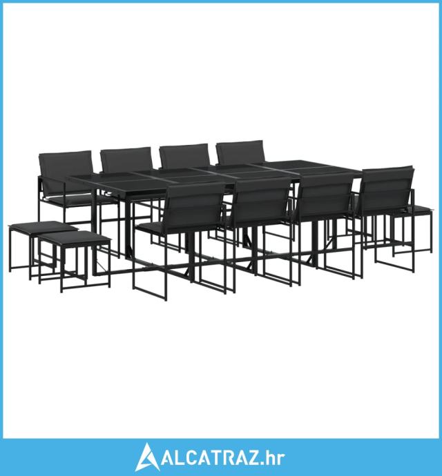 13dijelni vrtni blagovaonski set s jastucima crni od tekstilena - NOVO