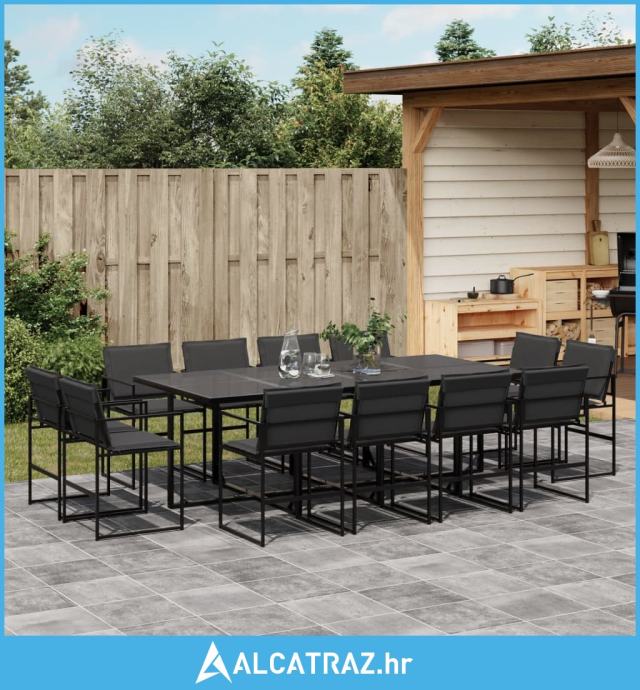 13dijelni vrtni blagovaonski set s jastucima crni od tekstilena - NOVO