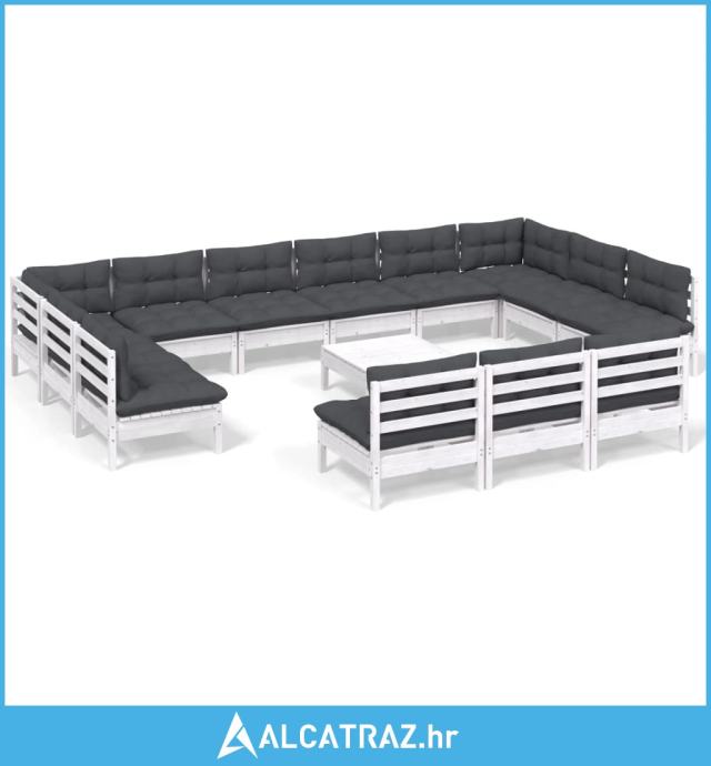 14-dijelna vrtna garnitura od borovine s jastucima bijela - NOVO
