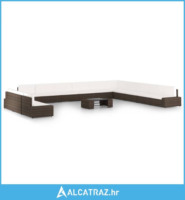 14-dijelna vrtna garnitura od poliratana s jastucima smeđa - NOVO