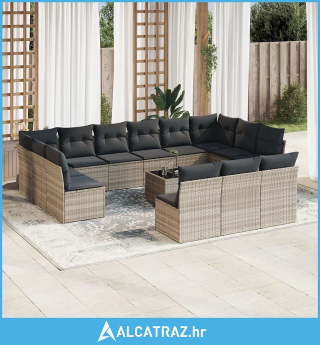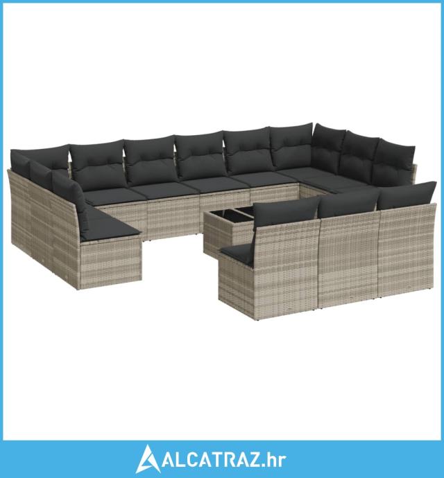 14-dijelni set vrtnih sofa poliratan s jastucima svijetlosivi - NOVO