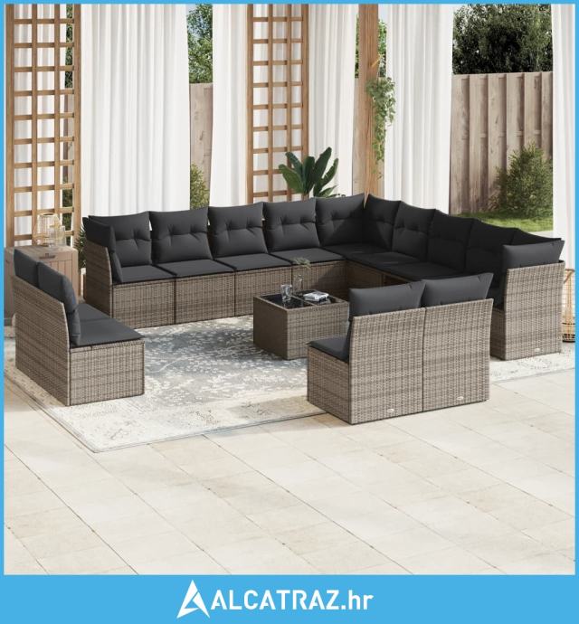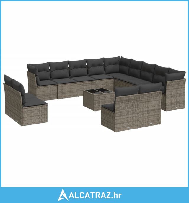 14-dijelni set vrtnih sofa od poliratana s jastucima sivi - NOVO