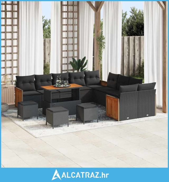 14-dijelni set vrtnog kauča s jastučićima Crna Poli Ratan Akacija - NO