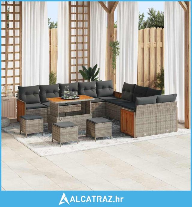 14-dijelni set vrtnog kauča s jastučićima siva poliratan akacija - NOV