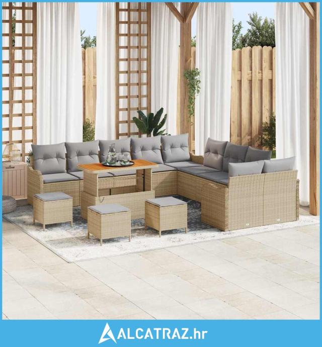 14-dijelni vrtni sofa set sa jastucima u bež poli ratan - NOVO