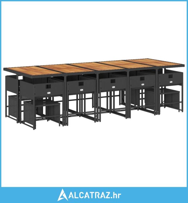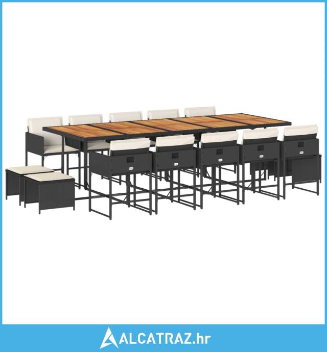 15-dijelni vrtni blagovaonski set s jastucima poliratan crni - NOVO
