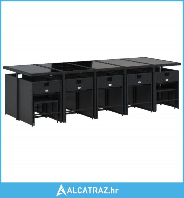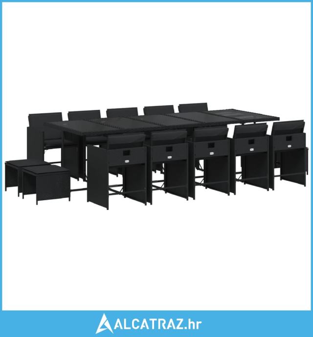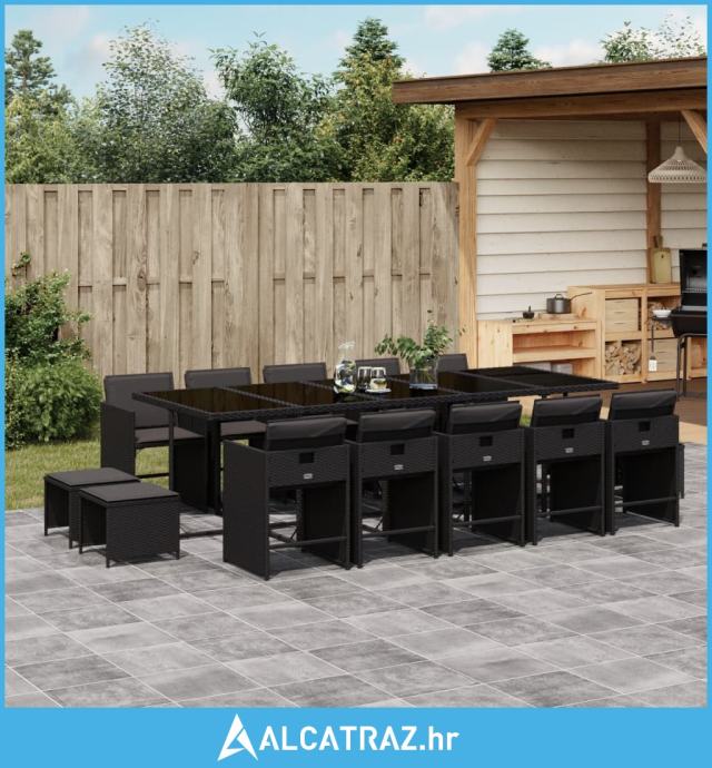 15-dijelni vrtni blagovaonski set s jastucima poliratan crni - NOVO