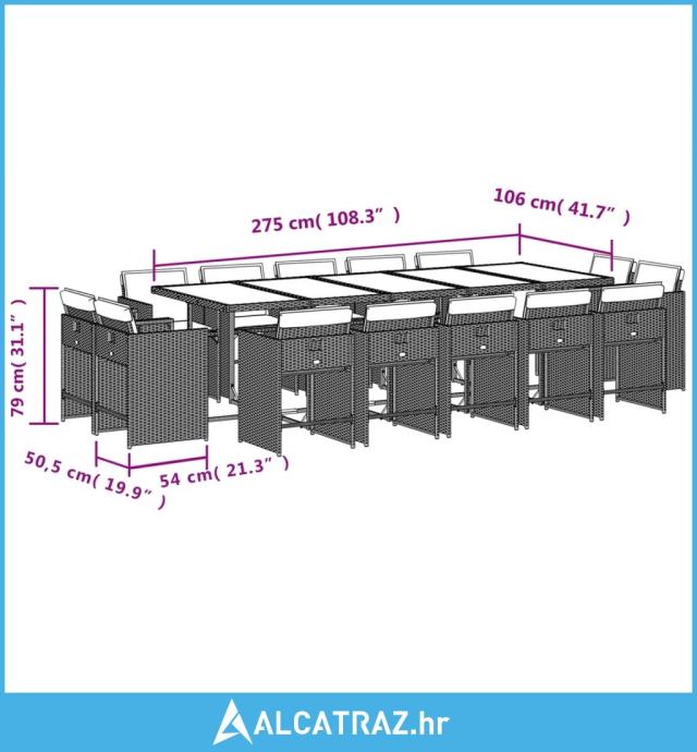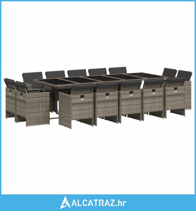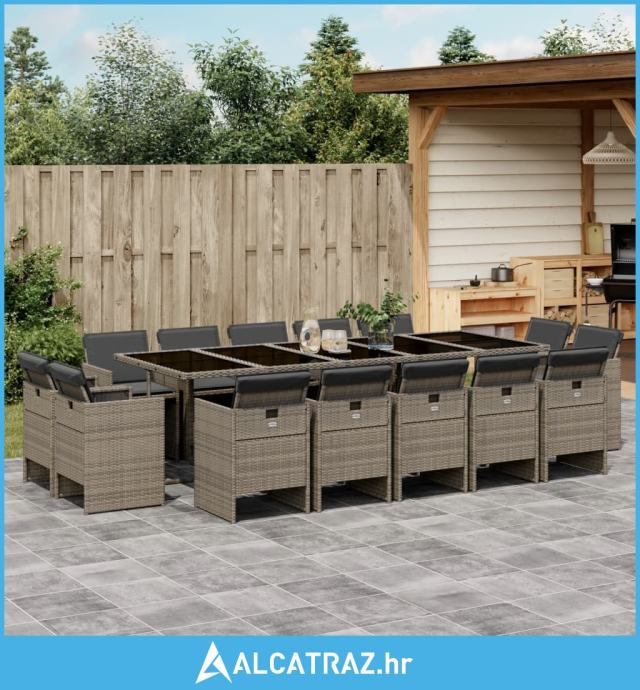 15-dijelni vrtni blagovaonski set s jastucima poliratan sivi - NOVO