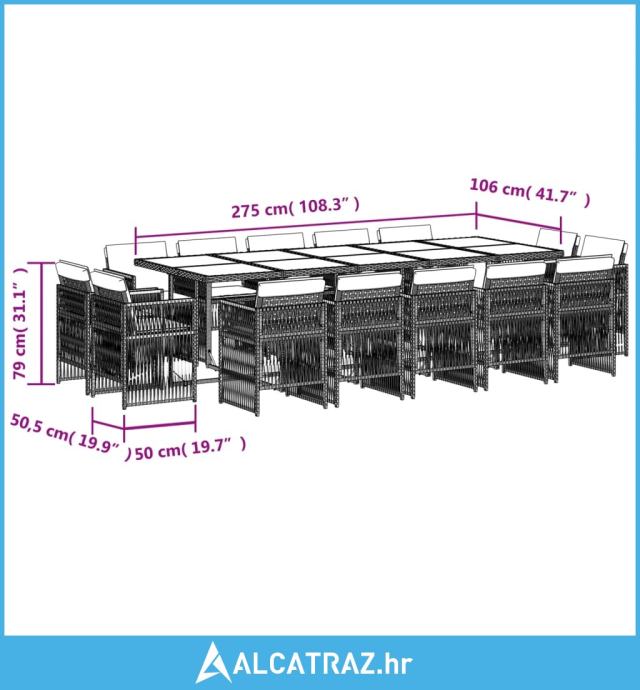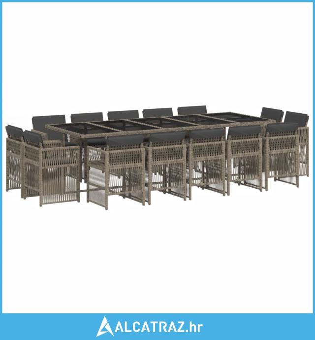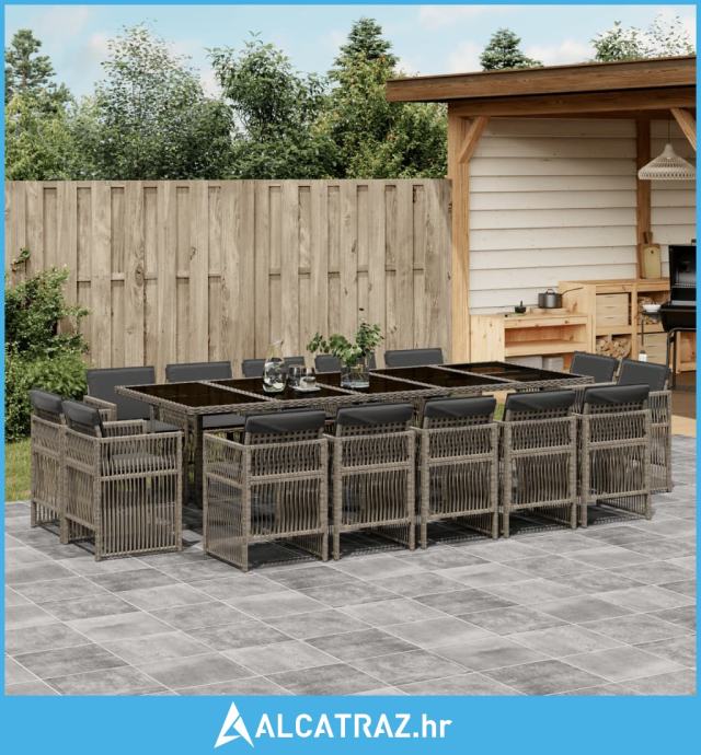 15-dijelni vrtni blagovaonski set s jastucima poliratan sivi - NOVO