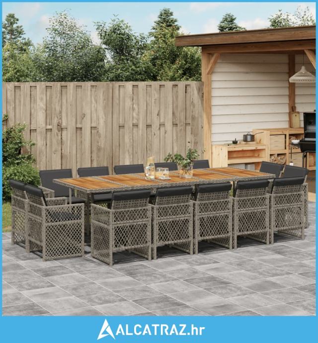 15-dijelni vrtni blagovaonski set s jastucima poliratan sivi - NOVO