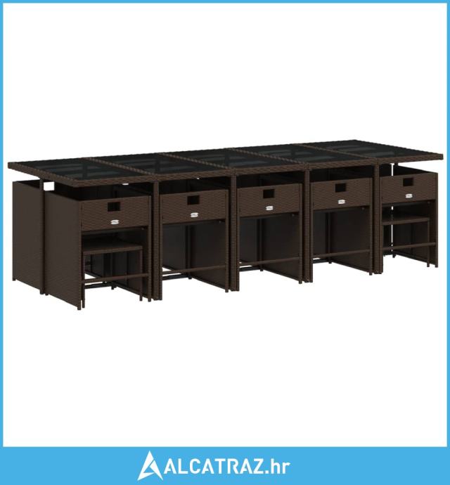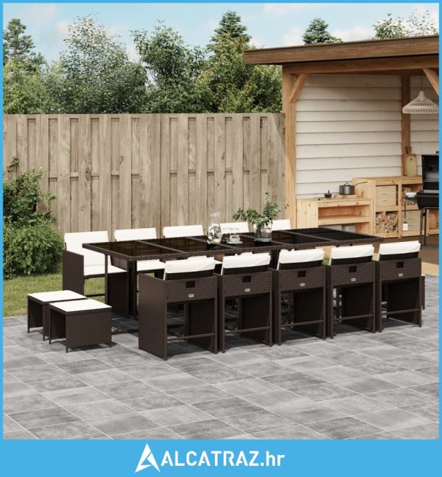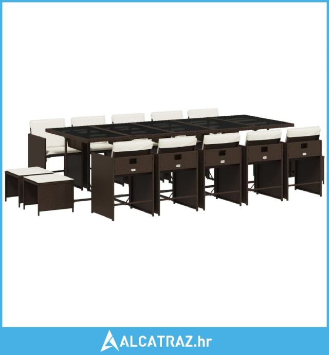15-dijelni vrtni blagovaonski set s jastucima poliratan smeđi - NOVO