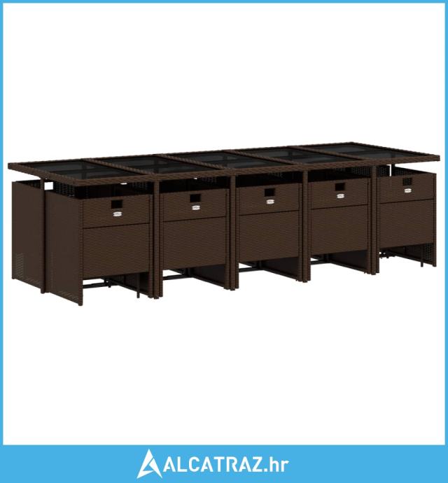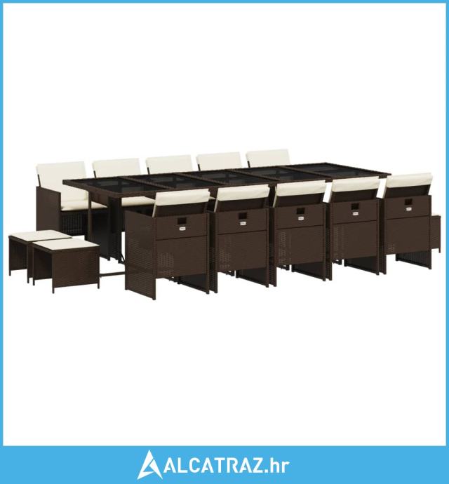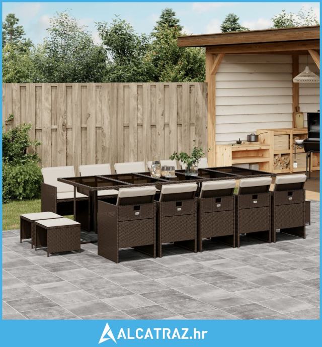 15-dijelni vrtni blagovaonski set s jastucima poliratan smeđi - NOVO
