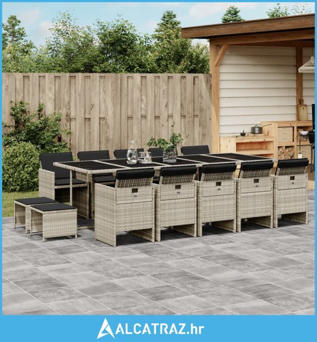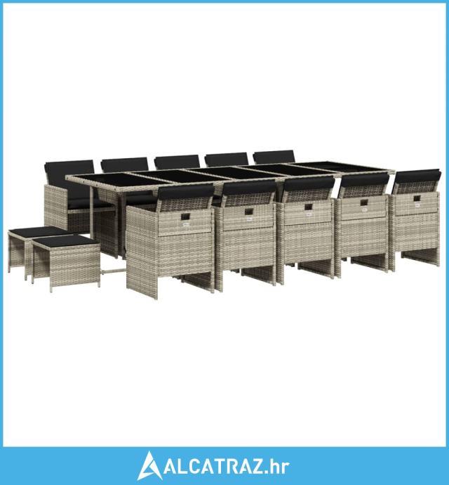 15-dijelni vrtni blagovaonski set s jastucima svijetlosivi - NOVO