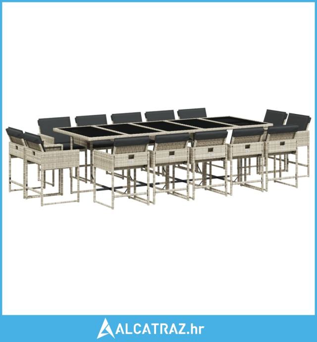 15-dijelni vrtni blagovaonski set s jastucima svijetlosivi - NOVO