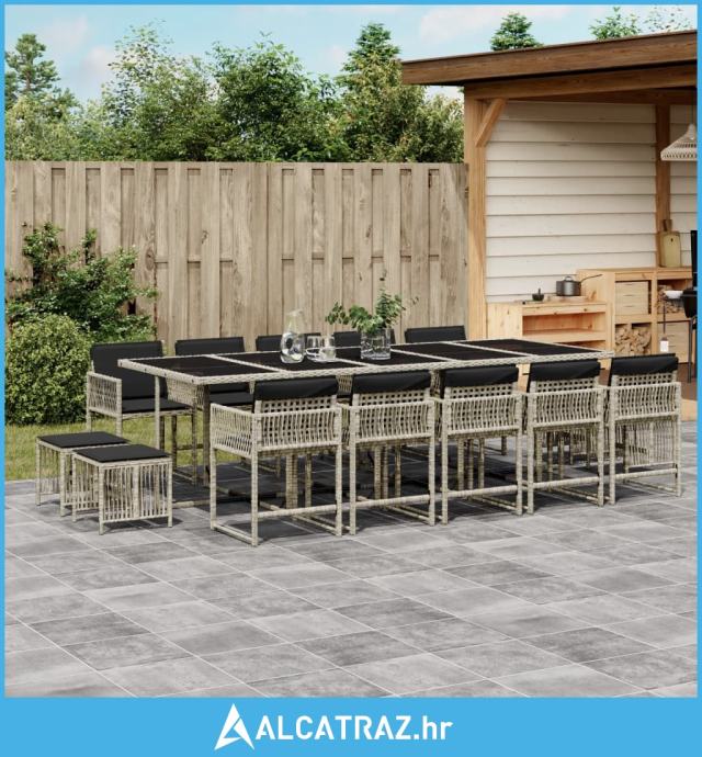 15-dijelni vrtni blagovaonski set s jastucima svijetlosivi - NOVO