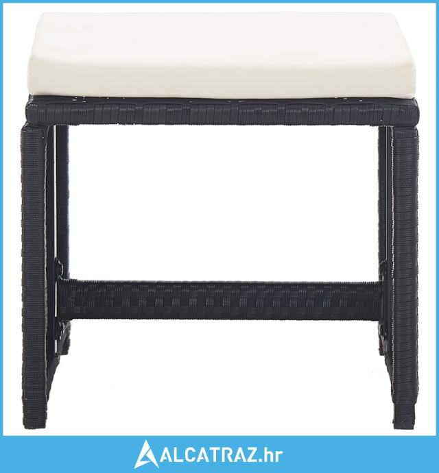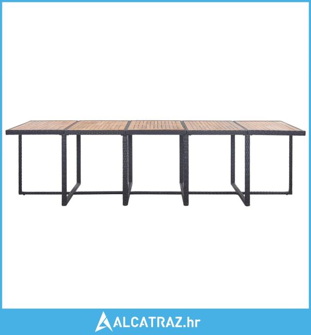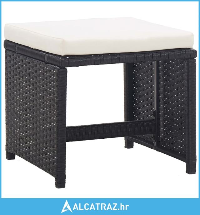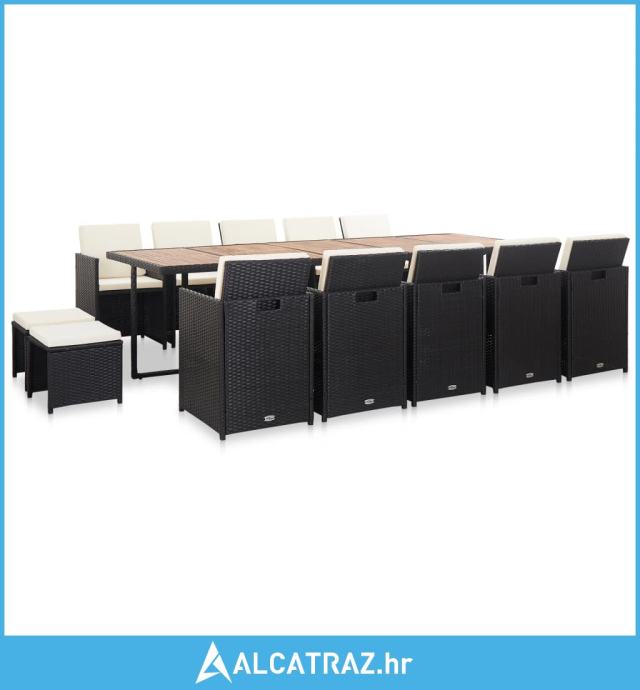 Isporuka uključuje 1 stol sa staklenom površinom, 10 stolica od ratana, 4 taburea i 24 odvojiva jastuka.