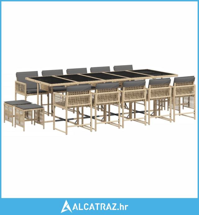 15-dijelni vrtni blagovaonski set od poliratana s jastucima bež - NOVO
