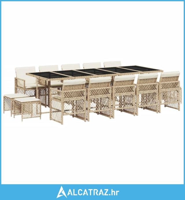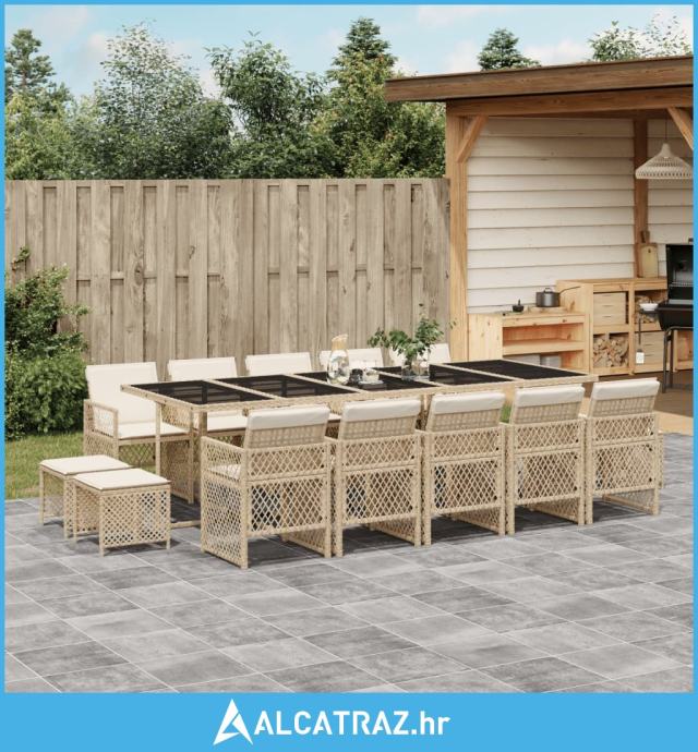 15-dijelni vrtni blagovaonski set od poliratana s jastucima bež - NOVO
