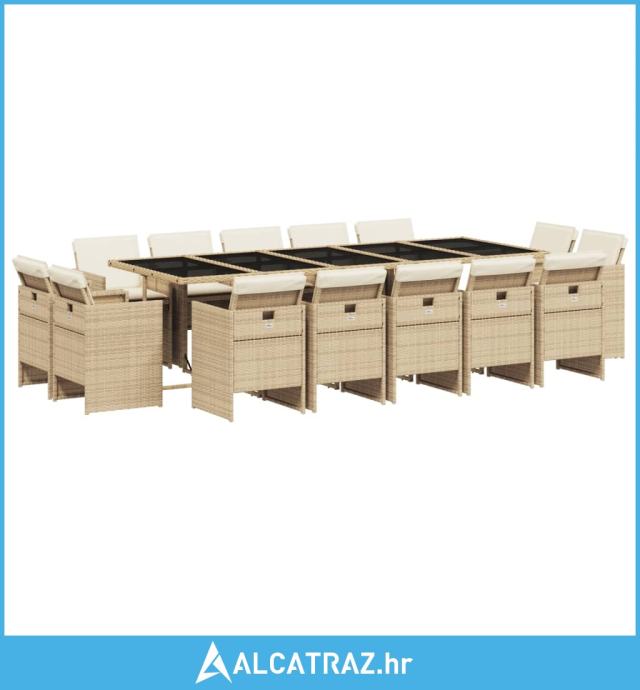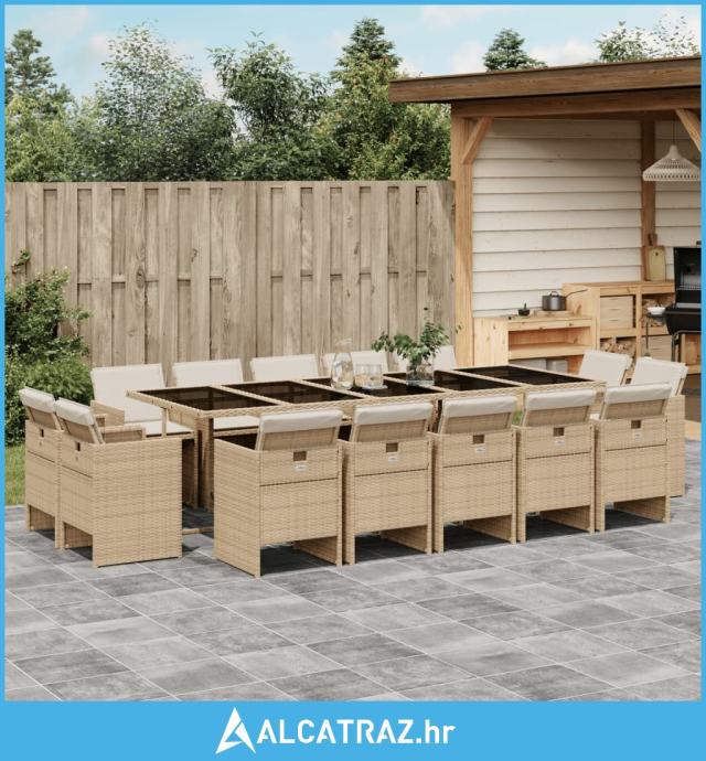 15-dijelni vrtni blagovaonski set od poliratana s jastucima bež - NOVO