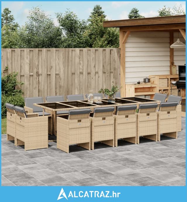 15-dijelni vrtni blagovaonski set od poliratana s jastucima bež - NOVO