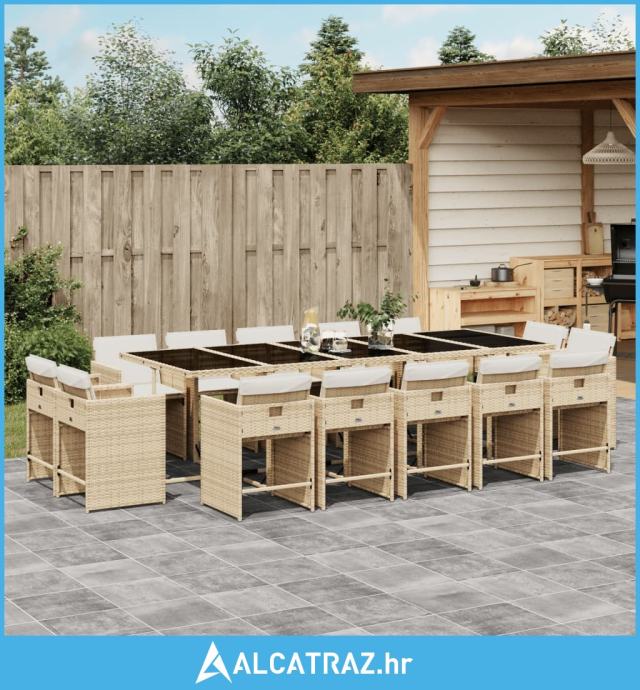 15-dijelni vrtni blagovaonski set od poliratana s jastucima bež - NOVO
