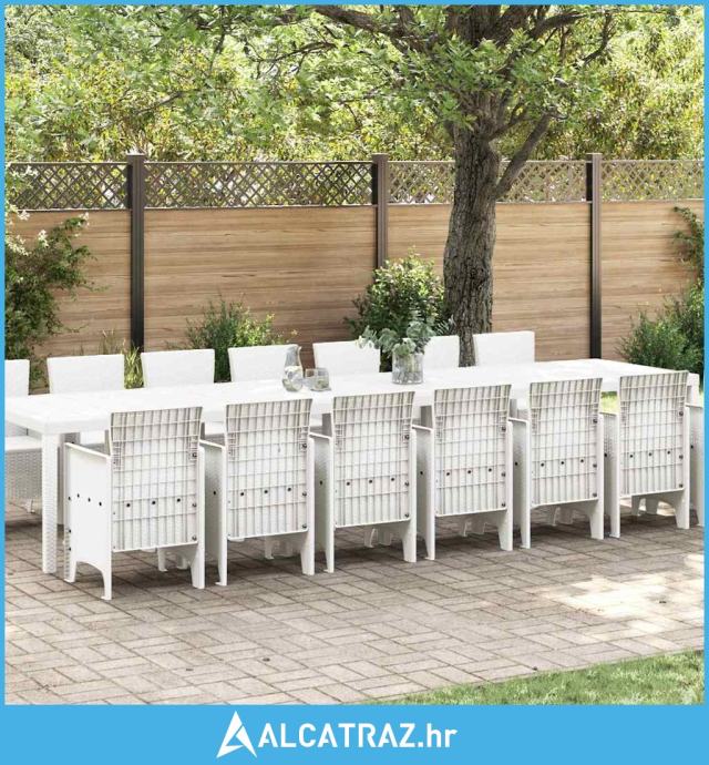 Ovaj vrtni set za objedovanje sjajno kombinira stil i praktičnost, s elegantnim pravokutnim stolom i 14 udobnih stolica. Savršen je za objedovanje i okupljanja vani. Moderni dizajn i chic bijela boja podižu izgled svake terase ili balkona, stvarajući savršeno mjesto za obiteljske obroke ili zabave.
