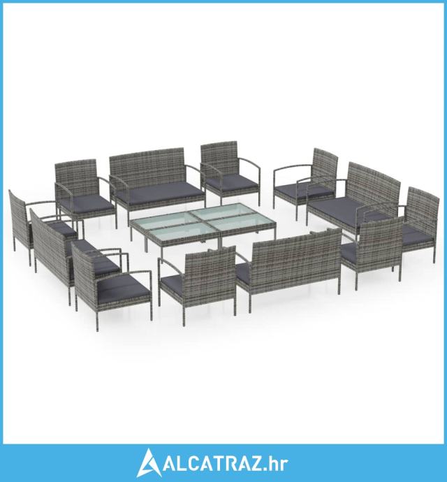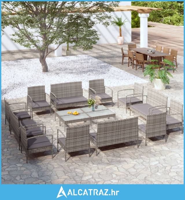 16-dijelna vrtna garnitura od poliratana s jastucima siva - NOVO