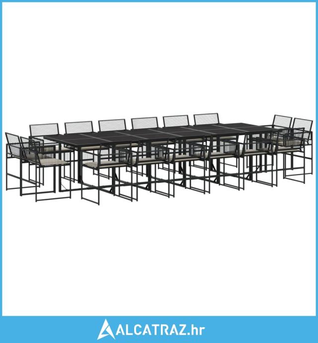 17-dijelni vrtni blagovaonski set s jastucima poliratan crni - NOVO