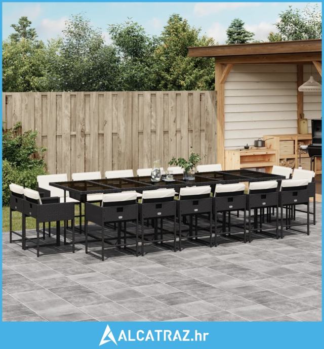17-dijelni vrtni blagovaonski set s jastucima poliratan crni - NOVO