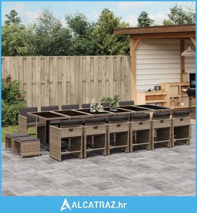 17-dijelni vrtni blagovaonski set s jastucima poliratan sivi - NOVO